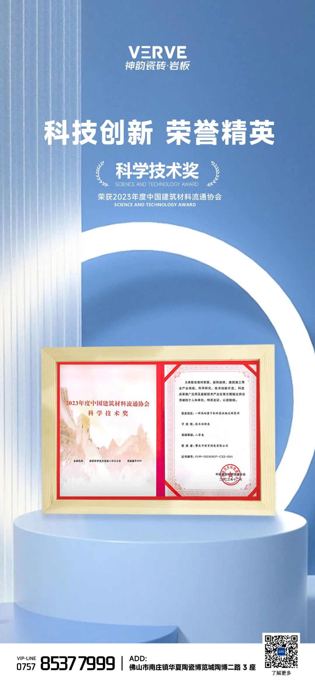 科技創新,榮譽精英 | 神韻瓷磚榮獲2023年度中國建筑材料流通協會“科學技術獎”